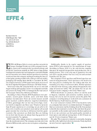 EFFE 4 es una de las empresas más importantes en el campo de la recuperación de spunlace en Europa. Giuseppe Finardi, fundador de la empresa, trabajó durante años en el sector de los artículos domésticos y se introdujo de lleno en el mundo del spunlace en 1993.